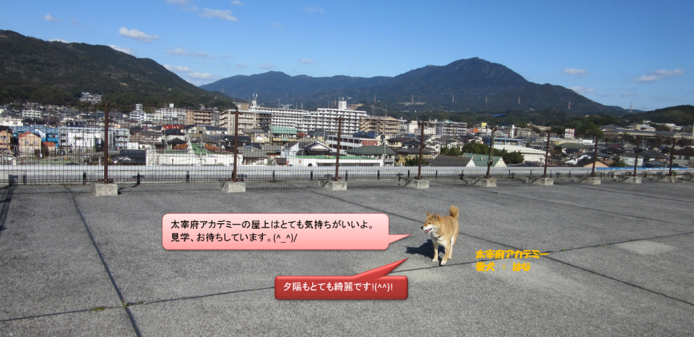 近郊は自然が多く、水城跡や、宝満山、九州国立博物館など気分転換の散歩コースもあります。全国的に有名な太宰府天満宮。近くに縁結びの神様、竈門神社もあり「志望校との縁を結ぶ」お手伝いもしてくれます(*゚▽゚)ノ