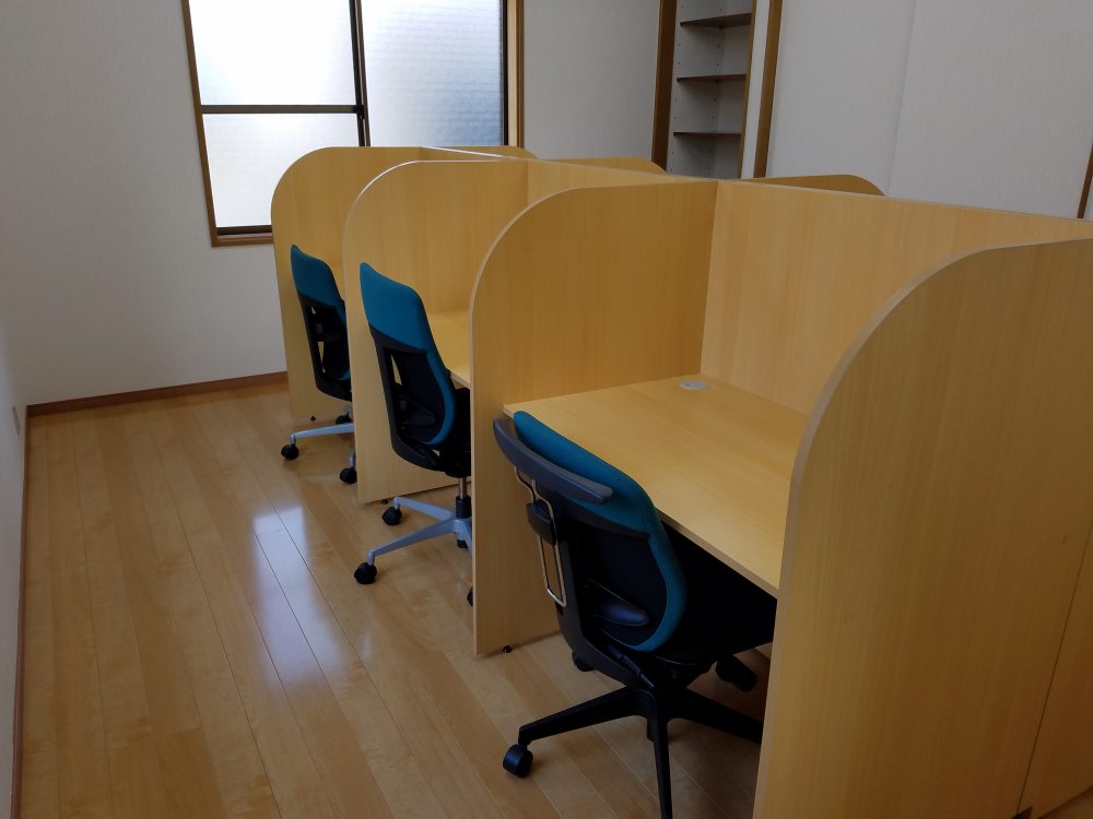 完全個別コースで利用する新館の自習室とリラックスルームも完成しました。