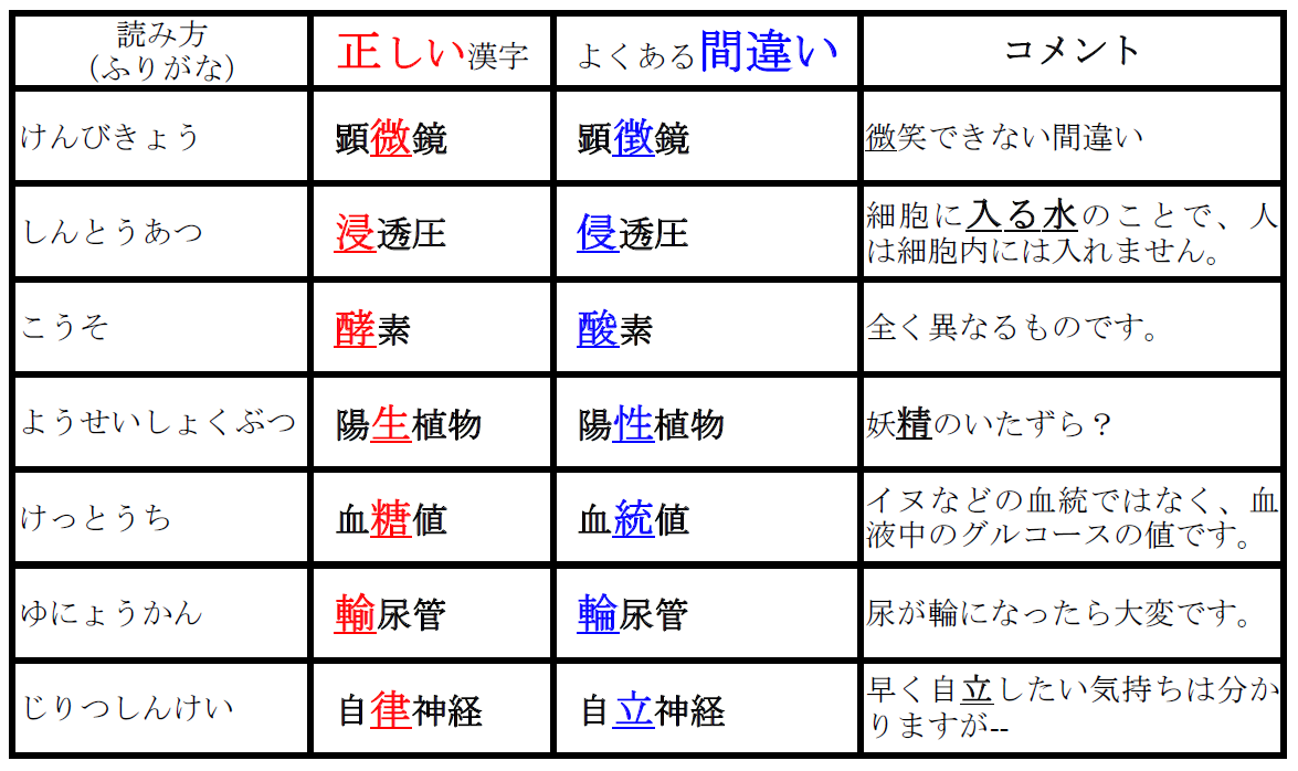 今回、生徒たちがよく間違えやすい漢字のいくつかをピックアップしてみました。