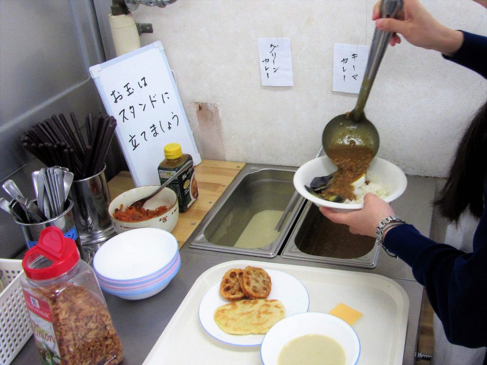 お米を控えている生徒は、代わりにたっぷりの夏野菜にかけて。