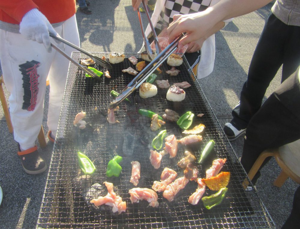 お肉や野菜はもちろん、焼きおにぎり、ウインナー、もちピザ、スペアリブ、手羽先、焼きそば、中華がゆ、焼きマシュマロなどなど…豊富なメニューにみんなで舌鼓☆