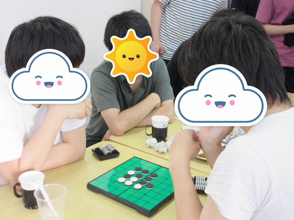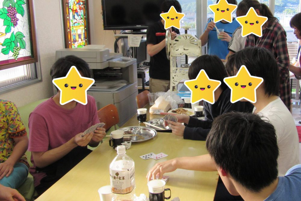 先に食事を終えた生徒さんは食堂でトランプや将棋などボードゲームを楽しんでいました。