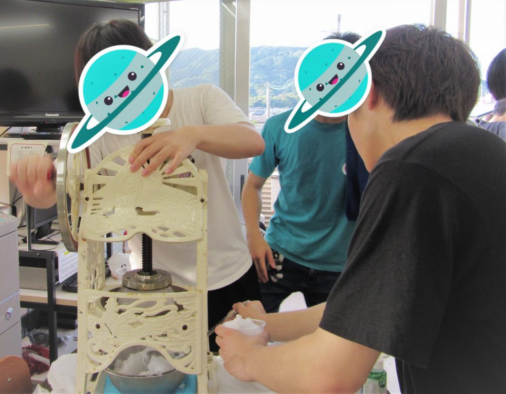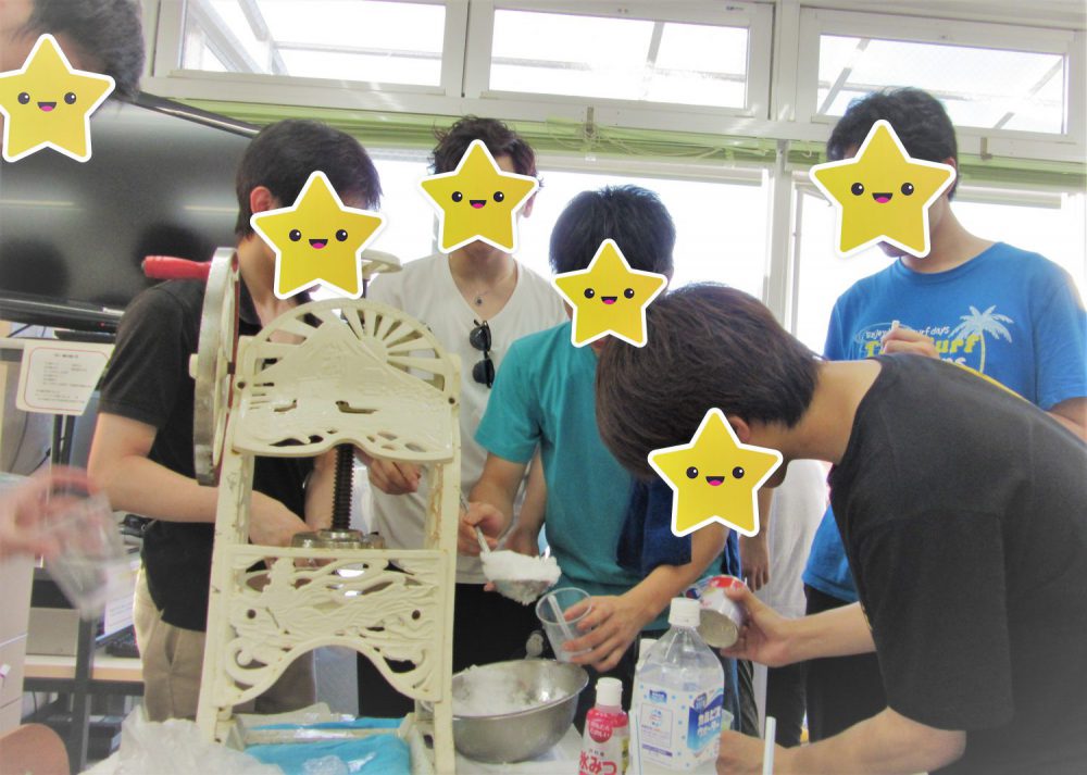 氷蜜ではなく、ジュースを使ってオリジナルのかき氷を作る生徒さんもいました。