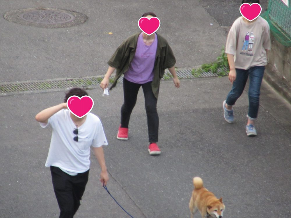 屋上から景色を眺めていると、ハナちゃんのお散歩に出かけていた生徒さんがちょうど帰ってきました。