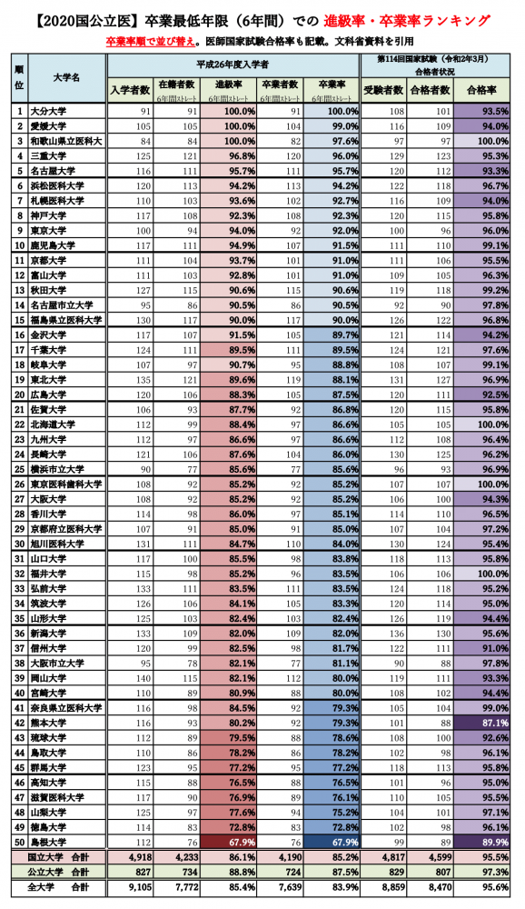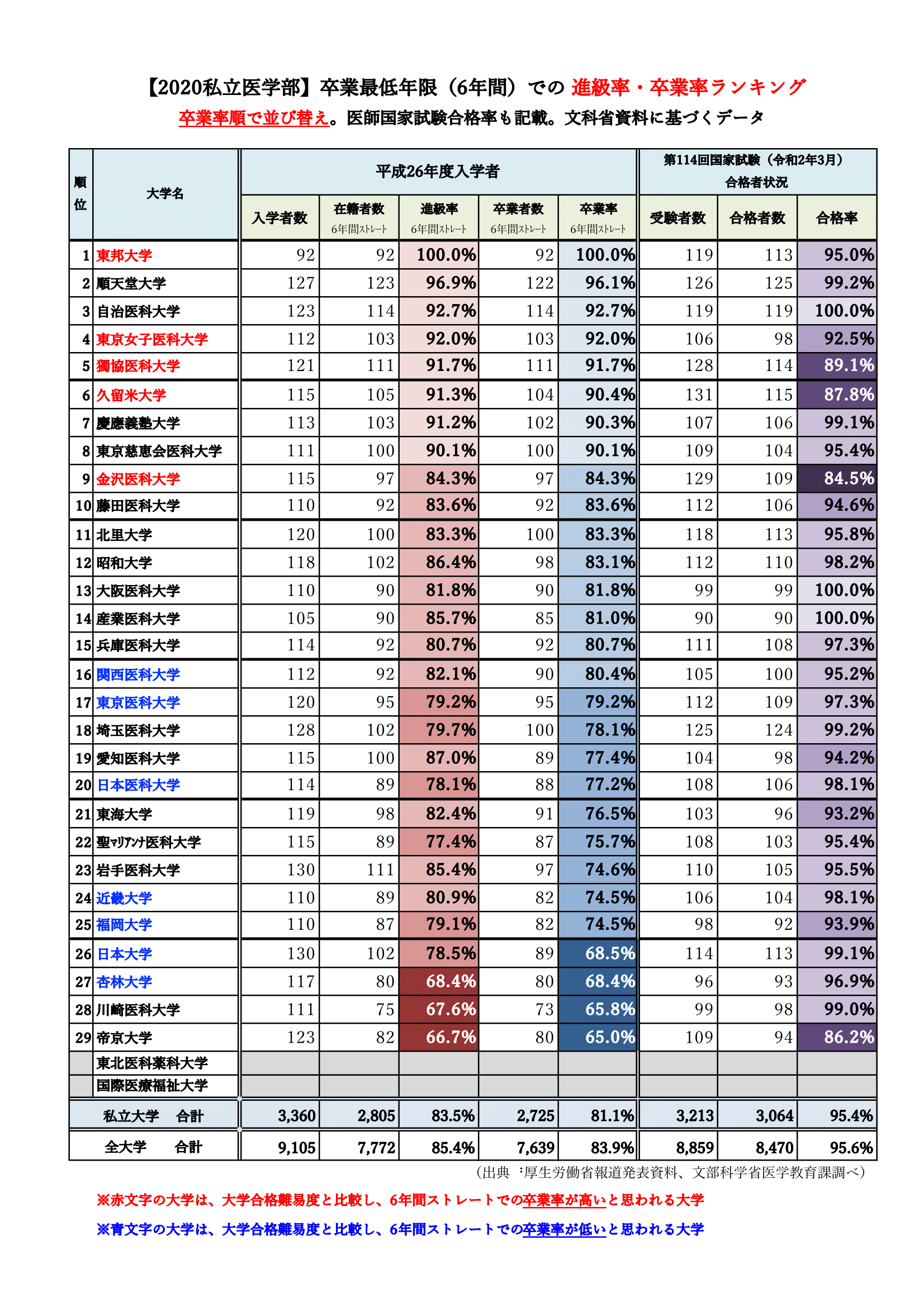 1、「全医学部の進級・卒試・国試合格率ランキング」